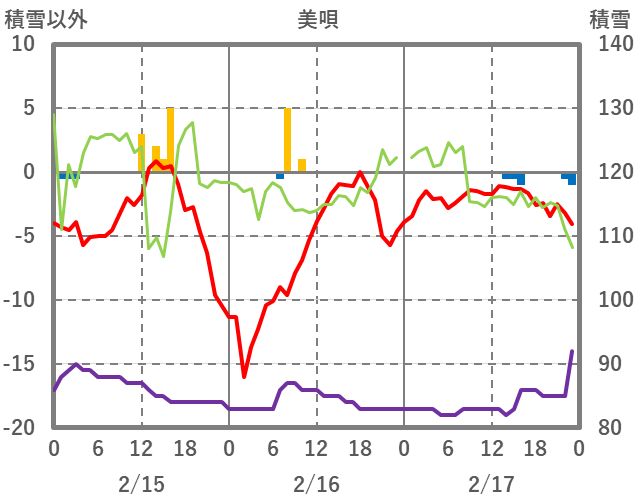 | 日 | 時 | 気温 | 降水 | 風向/風速 | 日照 | 積雪 | 降雪 |