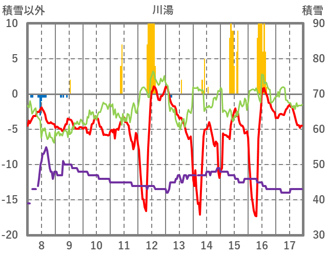 | 日 | 時 | 気温 | 降水 | 風向/風速 | 日照 | 積雪 | 降雪 |