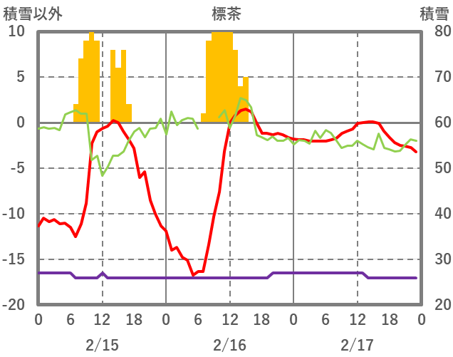 | 日 | 時 | 気温 | 降水 | 風向/風速 | 日照 | 積雪 | 降雪 |
