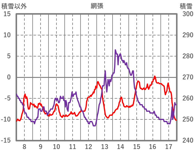 | 日 | 時 | 気温 | 降水 | 風向/風速 | 日照 | 積雪 | 降雪 |