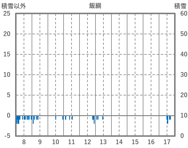 | 日 | 時 | 気温 | 降水 | 風向/風速 | 日照 | 積雪 | 降雪 |