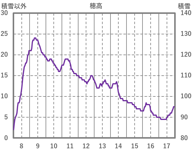 | 日 | 時 | 気温 | 降水 | 風向/風速 | 日照 | 積雪 | 降雪 |