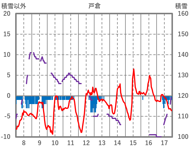 | 日 | 時 | 気温 | 降水 | 風向/風速 | 日照 | 積雪 | 降雪 |