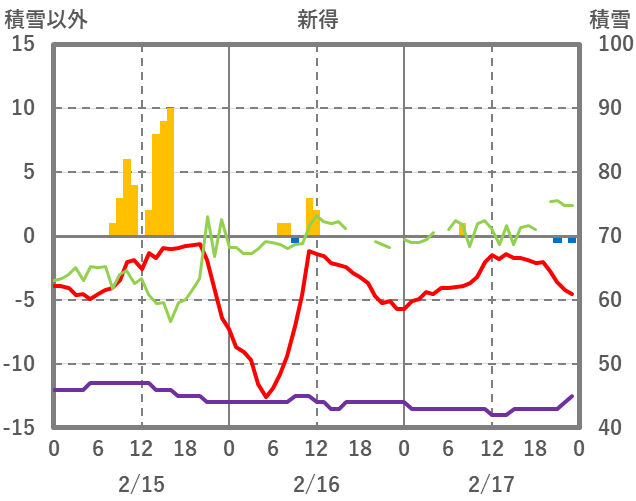 | 日 | 時 | 気温 | 降水 | 風向/風速 | 日照 | 積雪 | 降雪 |
