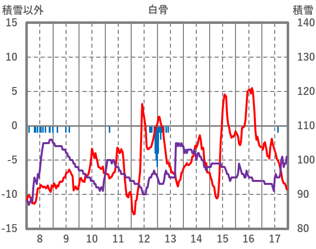| 日 | 時 | 気温 | 降水 | 風向/風速 | 日照 | 積雪 | 降雪 |