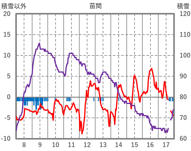 | 日 | 時 | 気温 | 降水 | 風向/風速 | 日照 | 積雪 | 降雪 |