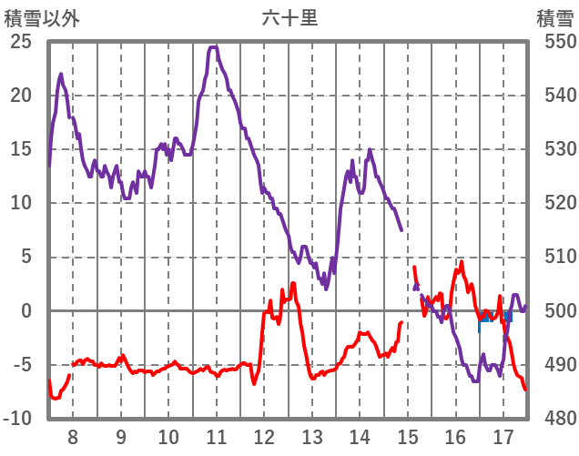 | 日 | 時 | 気温 | 降水 | 風向/風速 | 日照 | 積雪 | 降雪 |