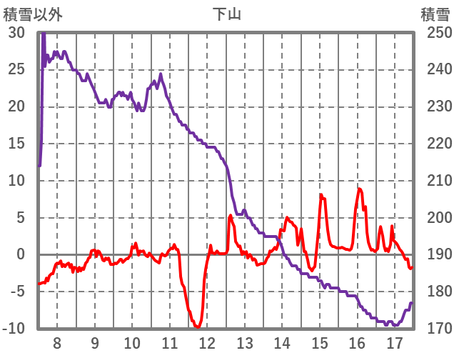 | 日 | 時 | 気温 | 降水 | 風向/風速 | 日照 | 積雪 | 降雪 |