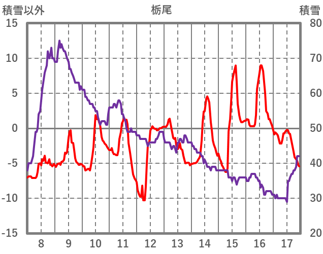 | 日 | 時 | 気温 | 降水 | 風向/風速 | 日照 | 積雪 | 降雪 |