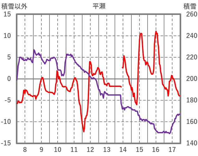 | 日 | 時 | 気温 | 降水 | 風向/風速 | 日照 | 積雪 | 降雪 |
