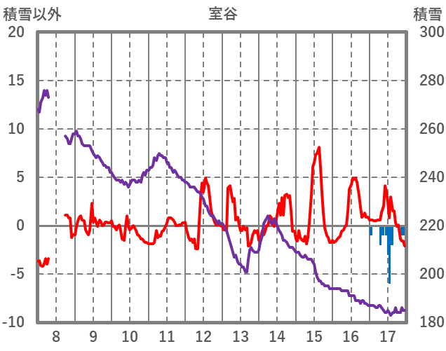 | 日 | 時 | 気温 | 降水 | 風向/風速 | 日照 | 積雪 | 降雪 |