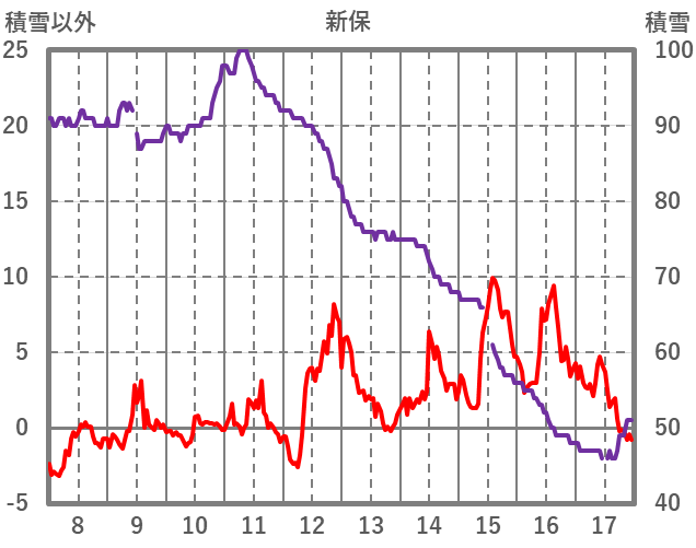 | 日 | 時 | 気温 | 降水 | 風向/風速 | 日照 | 積雪 | 降雪 |