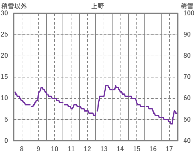 | 日 | 時 | 気温 | 降水 | 風向/風速 | 日照 | 積雪 | 降雪 |