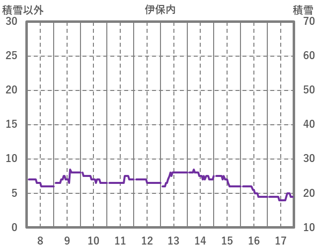 | 日 | 時 | 気温 | 降水 | 風向/風速 | 日照 | 積雪 | 降雪 |