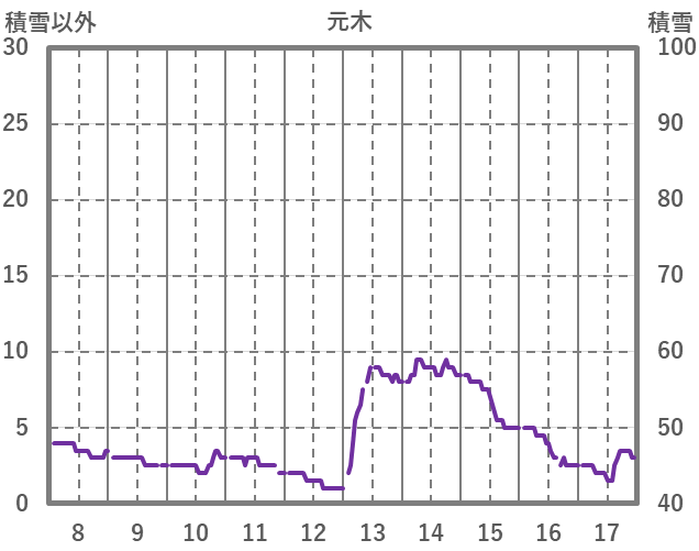| 日 | 時 | 気温 | 降水 | 風向/風速 | 日照 | 積雪 | 降雪 |