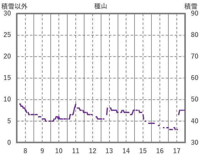 | 日 | 時 | 気温 | 降水 | 風向/風速 | 日照 | 積雪 | 降雪 |