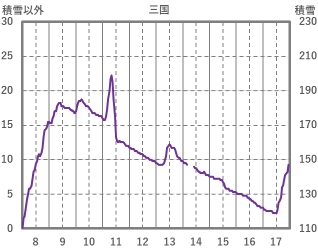 | 日 | 時 | 気温 | 降水 | 風向/風速 | 日照 | 積雪 | 降雪 |