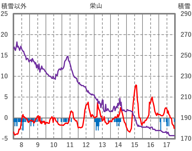 | 日 | 時 | 気温 | 降水 | 風向/風速 | 日照 | 積雪 | 降雪 |