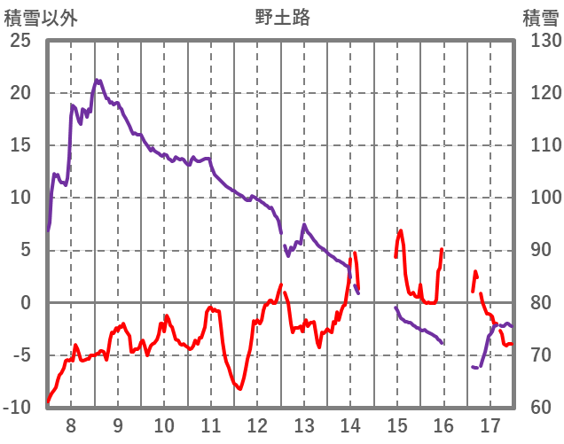 | 日 | 時 | 気温 | 降水 | 風向/風速 | 日照 | 積雪 | 降雪 |