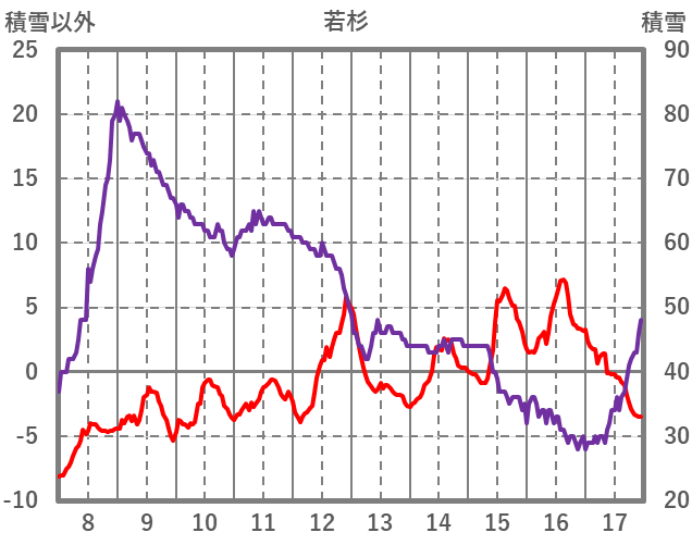 | 日 | 時 | 気温 | 降水 | 風向/風速 | 日照 | 積雪 | 降雪 |