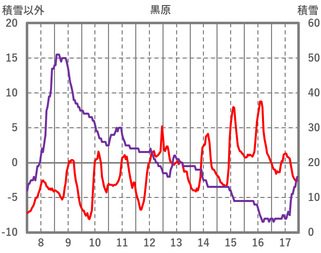 | 日 | 時 | 気温 | 降水 | 風向/風速 | 日照 | 積雪 | 降雪 |