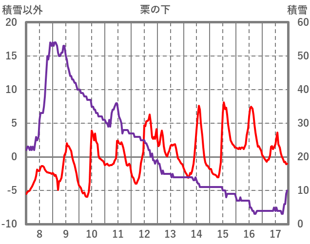 | 日 | 時 | 気温 | 降水 | 風向/風速 | 日照 | 積雪 | 降雪 |