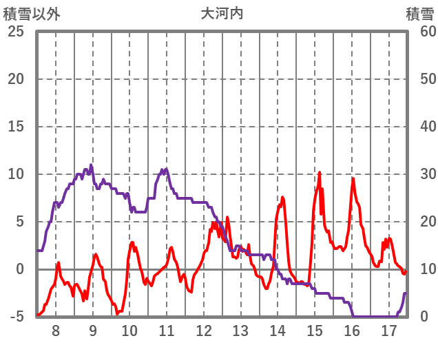 | 日 | 時 | 気温 | 降水 | 風向/風速 | 日照 | 積雪 | 降雪 |