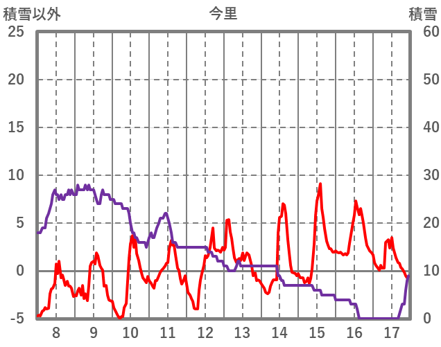 | 日 | 時 | 気温 | 降水 | 風向/風速 | 日照 | 積雪 | 降雪 |