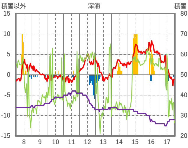 | 日 | 時 | 気温 | 降水 | 風向/風速 | 日照 | 積雪 | 降雪 |