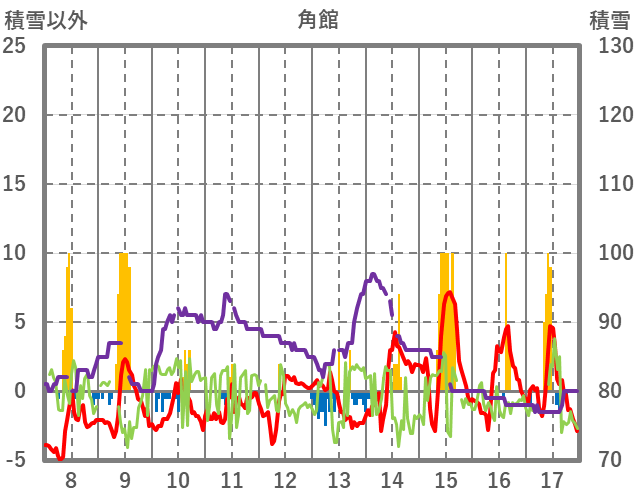 | 日 | 時 | 気温 | 降水 | 風向/風速 | 日照 | 積雪 | 降雪 |