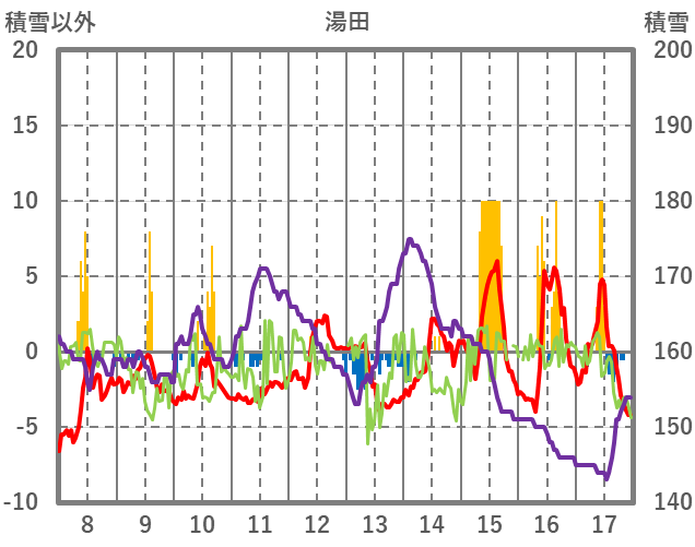 | 日 | 時 | 気温 | 降水 | 風向/風速 | 日照 | 積雪 | 降雪 |