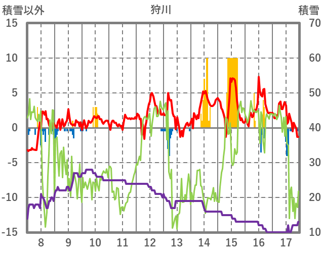 | 日 | 時 | 気温 | 降水 | 風向/風速 | 日照 | 積雪 | 降雪 |