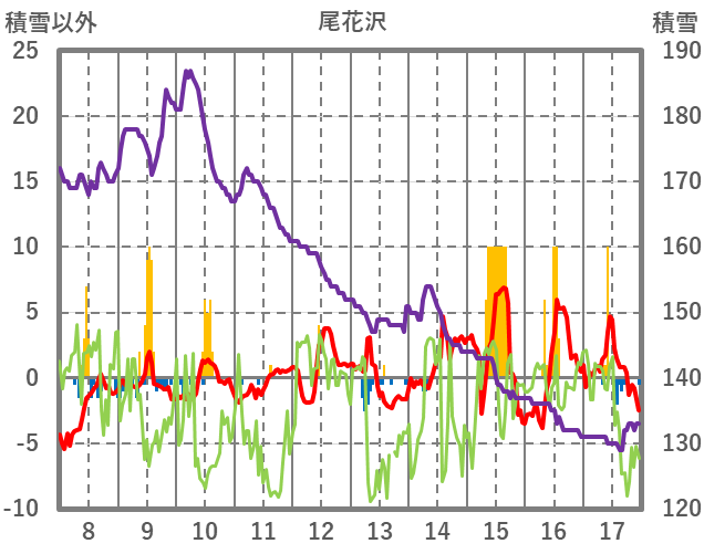 | 日 | 時 | 気温 | 降水 | 風向/風速 | 日照 | 積雪 | 降雪 |