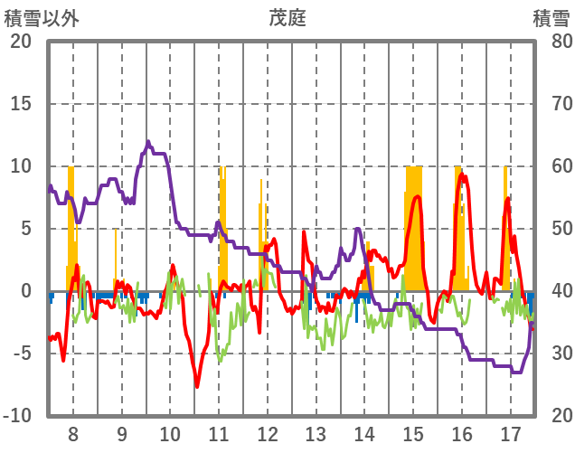 | 日 | 時 | 気温 | 降水 | 風向/風速 | 日照 | 積雪 | 降雪 |