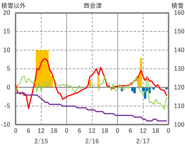 | 日 | 時 | 気温 | 降水 | 風向/風速 | 日照 | 積雪 | 降雪 |