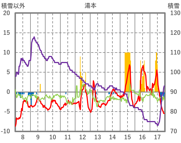 | 日 | 時 | 気温 | 降水 | 風向/風速 | 日照 | 積雪 | 降雪 |