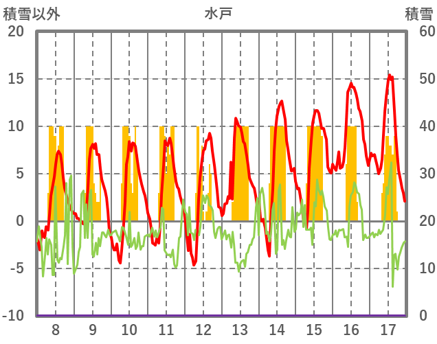 | 日 | 時 | 気温 | 降水 | 風向/風速 | 日照 | 積雪 | 降雪 |
