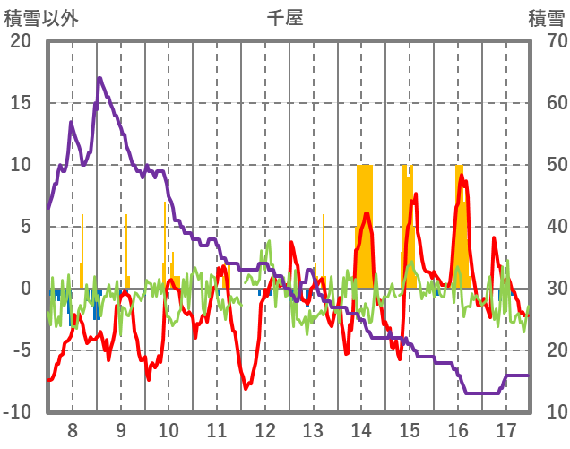 | 日 | 時 | 気温 | 降水 | 風向/風速 | 日照 | 積雪 | 降雪 |