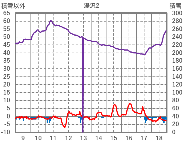 | 日 | 時 | 気温 | 降水 | 風向/風速 | 日照 | 積雪 | 降雪 |