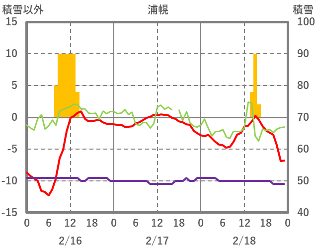 | 日 | 時 | 気温 | 降水 | 風向/風速 | 日照 | 積雪 | 降雪 |