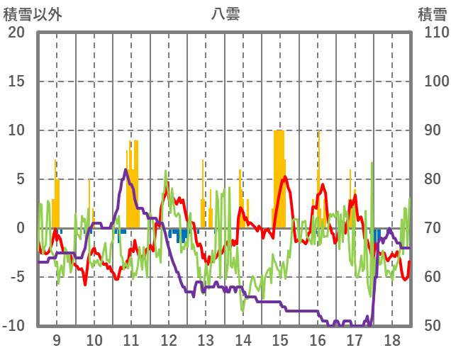 | 日 | 時 | 気温 | 降水 | 風向/風速 | 日照 | 積雪 | 降雪 |