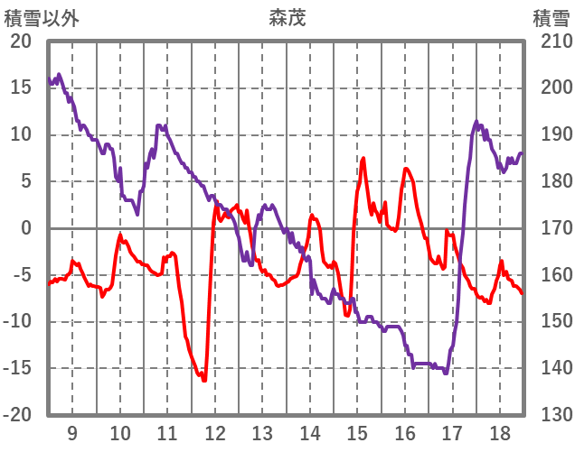 | 日 | 時 | 気温 | 降水 | 風向/風速 | 日照 | 積雪 | 降雪 |