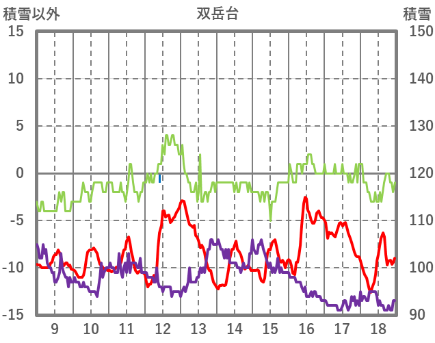 | 日 | 時 | 気温 | 降水 | 風向/風速 | 日照 | 積雪 | 降雪 |