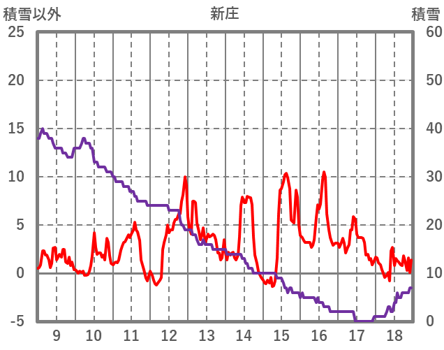 | 日 | 時 | 気温 | 降水 | 風向/風速 | 日照 | 積雪 | 降雪 |