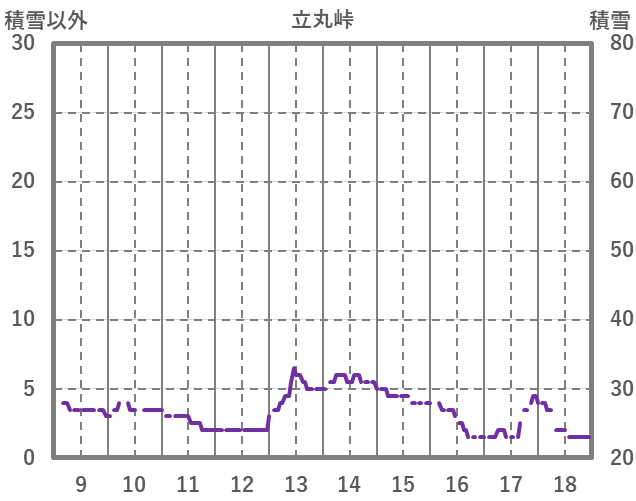 | 日 | 時 | 気温 | 降水 | 風向/風速 | 日照 | 積雪 | 降雪 |