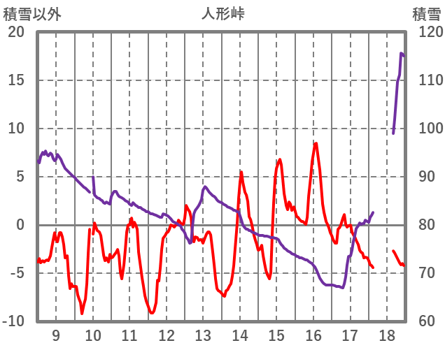 | 日 | 時 | 気温 | 降水 | 風向/風速 | 日照 | 積雪 | 降雪 |