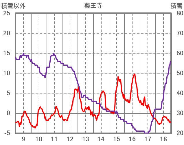 | 日 | 時 | 気温 | 降水 | 風向/風速 | 日照 | 積雪 | 降雪 |