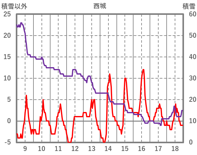 | 日 | 時 | 気温 | 降水 | 風向/風速 | 日照 | 積雪 | 降雪 |