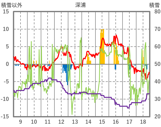 | 日 | 時 | 気温 | 降水 | 風向/風速 | 日照 | 積雪 | 降雪 |