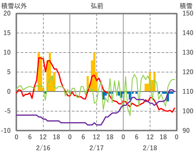 | 日 | 時 | 気温 | 降水 | 風向/風速 | 日照 | 積雪 | 降雪 |